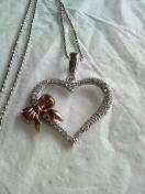 商品説明ハートに沿ってパヴェダイヤ風のジルコニアがにちりばめられ、ちょこんとリボンが付いた可愛らしいネックレスです。- 締切日時