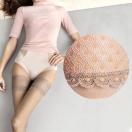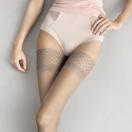 シリコンストッパー付きの約8cm幅のレース部分に、青海波系の非常に細かい模様がデザインされたタイツです。