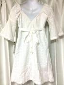 【白刺繍デートワンピAラインリボン背中Vカット新品ポンポン】