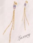 クリアビジューや華奢な3連チェーンが品よく揺らぐ洗練レディなピアス