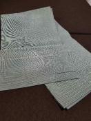 お写真では、解り辛いですが‥涼しげなモスグリーンが素敵なおしなです。無地で織り目で横縞の様に見えます。祖母が購入して未使用のまま、実家に保管していたお品で、宇野千代[銀座]のたとう紙にくるまれておりました。宇野千代さんのお品かは定かでは有りません。たとう紙はお品物に含まれません。
