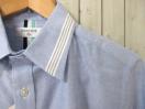 爽やかなカラーに、襟のラインと、ボタンを開けたときのフロントのラインがアクセントになります。