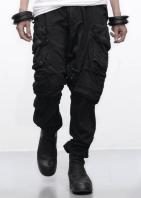 独特の皴加工を施した光沢あるナイロン素材のサルエルパンツです。
