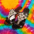 エナメル&クリアヒールサンダル