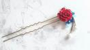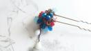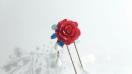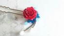 モダンなイメージで真っ赤な薔薇に青や白いビーズをあわせました。