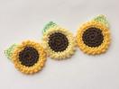 レース糸とコットンミックス糸でひまわりのブローチできました♪