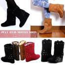 シンプル で ベーシック な デザイン に トンガリ スタッズ を プラス してかわい すぎない クール な 印象 のウェッジソール ムートン ブーツさりげなくスタイル を 良く せてくれるのも 嬉しい ポイント