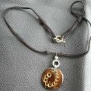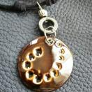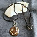 ★カラー/黒の革ひも、焦げ茶系陶器にドットの模様