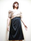 [商品情報] くしゅAシャーリングドレープに張り感のあるスカートがきちんと魅せるフォーマルの高品質ワンピドレスです。 ブランド:インポート 色:微光沢ベージュ×黒 サイズ:L相当 平置き⇒肩44幅cm、胸元幅47cm、着丈91cm、ウエスト44cm、裾幅55cm、袖丈24cm 素材:ビスコース/アセテート ストレッチ:あり ファスナー:横 裏生地:あり 他:着用の少ない美品です。