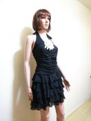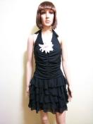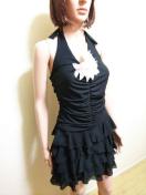 [商品情報] ロングシャーリングにフリAティアードの可愛いミニドレスです。コサも嬉しいです。 色:黒 サイズ:F 平置き⇒胸元幅34cm、脇下からの着丈63〜67cm、ウエスト32cm、裾幅64cm 素材:ポリエステル ストレッチ:あり 背ゴム:あり ファスナー:なし パット:なし 裏生地:あり 他:着用の少ない美品です。