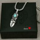 クロム シルバー ターコイズ シングル 1 フェザー 羽根 あずき チェーン ネックレス 手首 には ブレスレット です。