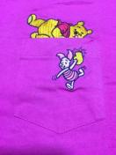 濃いピンクの生地に、プーさんとピグレットが遊んでいる刺繍がとっても可愛いです☆