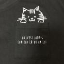 トラ猫キャラクターが胸ポケットからのぞいているデザインです