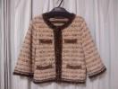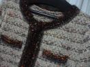 色はベージュ主体のツイードのような複雑なニットで縁取りの色が茶色です。