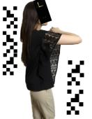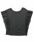 素材は→☆本体.コットン100%☆レース.ポリエステル100%、で、身頃はTシャツカットソー素材で、レースは丈夫なネイティブ柄です〓。色は真っ黒です〓。