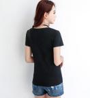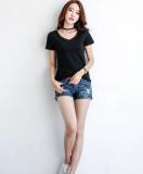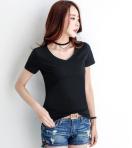 Vネック レディース 半袖 トップス 夏 無地 大きいサイズ ブラック 白