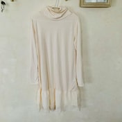 小花+ドットの柄に、ポイントに黒のフリルがアクセントになっている、チュニックワンピ。さらさらした素材。袖、胸下にゴムが入ってふんわり感抜群。仕入の新品タグ付ですが、自宅保管ですので、ご理解ある方のお取引お願い致します -