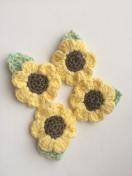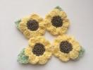 レース糸とコットンミックス糸でひまわりを編んで、ブローチを作りました。