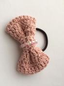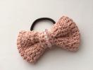 ラメ入りコットン糸でリボンを編んで、ヘアゴム を作りました。