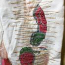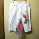 ★カジュアルなホワイトデニムに、センター両面に、バラプリントのオーガンジーがついたデザインの、ひざ丈スカート。微ストレッチがあり、着心地も良いです。裏地無し。自宅保管なので、たたみシワがありますが、ご了解できる方とのお取引、お願い致します。- 締切日時