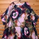 アートな大柄花模様が大人の雰囲気のゆったりコクーンワンピース♪1枚で大人のサマースタイルが完成♪