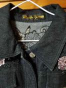 濃い紺のデニム地に、スパンコール&ビーズで飾った美麗なGジャンです。春先〜秋口迄活躍するかとおもいます。系統変わった為。未着用での出品です。