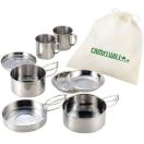 材質:鍋大・フタ兼用フライパン・鍋小・フタ兼用皿・小皿・マグカップ/ステンレス、携帯袋/不織布