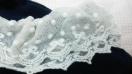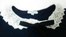 全体色はネイビ-〜幅広いレ-スが魅力的〜今大流行の水玉が可愛い〜希少な珍しいリボン柄レ-スが可憐〜リボン結びも出来て優雅な雰囲気もあり〜首回り&裾にレ-スがお洒落〜BALANCe良いデザインが素敵ですね(*^^*)