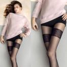 太もも部分にオリエント調のペイズリー柄が施されたシンプルなタイハイ風柄のパンティホース(パンスト)です。