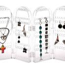 ピアスは、くぼみに引っかける方法と表面に開けてある穴に引っかける方法があります。また、ピアス以外にもネックレスやブレスレットなどもディスプレイできます。