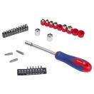 セット内容:ラシオペンチ、精密ドライバー(2.5mm, 3.0mm, PH0, PH00)、 カッター、替え刃、差込角6.35mm(1/4インチ)の多機能ドライバーハンドル、差込角6.35mm (1/4インチ)のソケットセット(5、6、7、8、9、10、11、12、13mm)、ビットセット、ニッパープライヤー、爪ハンマー、内六角レンチ(1.5、2、2.5、3、4、5、5.5、6mm)、レベル、ビットセット、モンキーレンチ、プラスチックバンド。