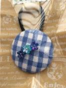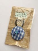 ブルーチェック生地でくるみボタンのヘアゴム を作りました。