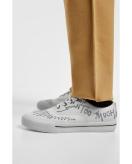 細かい所までこだわったデザインで、アイレット4ペア、アッパーにエンボス加工テキストディテール入り、ホワイトソールになります。