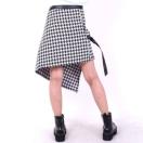 ウエストは、4個のボタンで調節可能、左ファスナーポケットあり。シルエットが綺麗な千鳥格子のラップスカートです。一枚でもOKですが、レギンス等合わせると、オールシーズン可能です。
