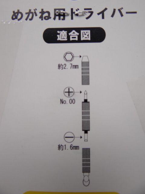プラスドライバー(1本):No.00、マイナスドライバー(1本):1.6mm