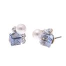 キュービック型のキラキラビジュー×パールのピアスは、光の反射によって豊かな表情をみせてくれます