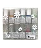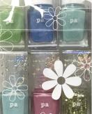 280円のスタンダードなシリーズ6本と380円のプレミアシリーズ6本セットで、山吹色&茶色はマット、ピンクはパール、透明はゴールド大ラメ、他は細かいラメが入っているマニキュアです〓。