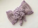 レース糸とラメ入りコットン糸で大きめリボンを編んで、バレッタに仕上げました。