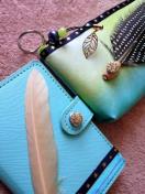 お揃いのゴールドカラーフェザー&ビーズチャーム付き☆