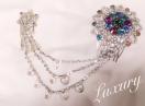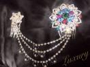 キラキラのカラフルなビジューがお花型にたくさん付き、チェーンビジューにハートがついたとても上品ながら華やかなヘアアクセサリー