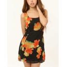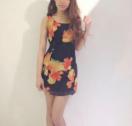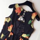 ブラックボディにオレンジの花柄がエレガントで大人なイメージ、背面はざっくり開いてセクシーな印象