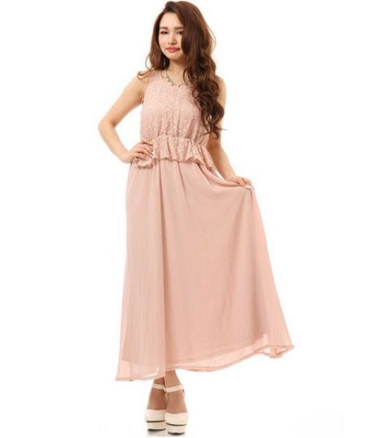 エレガントなオーラ漂うレースコンビのマキシ丈ワンピース