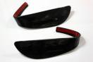 ドアミラーバイザーtype1です。人気のドアミラーバイザーに違うタイプを追加しました。柔らかい素材のため、いろんなドアミラーの形状に対応いたします。貼り付ける箇所の脱脂を行っていただき愛車のドアミラーに裏面両面テープにてはりつけるだけです。雨天時のドアミラの視界確保を高めるほかドアミラーのファッション性も高める商品です。