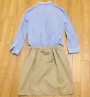 青のストライプシャツとベージュのスカートのドッキングワンピース