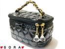 ハート生地とリボンが可愛いすぎでファスナーのジュエルアクセもキラキラ綺麗なプクプクしたエナメルキルティングラブリーCUTEなバッグ