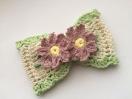 コットン糸で大きめリボンを編んでコスモスをのせました。