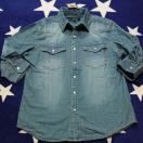 【 スタイリッシュ 七分袖 ウエスタン調デザイン デニムシャツ】