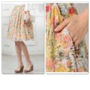 流れるようにプリントされたリバティのスカートです。毎年ご好評いただいておりますリバティ柄ですが、今年は柔らかい生地にプリントし大人っぽいデザインに仕上げました。生地にはきらきらと光る透明なフィルムが入っており、透け感が軽やかな1枚になっております。背中部分はゴムになっておりますので、快適にお召しいただけます。今のトレンドに合わせて少しレングスを長くしておりますので、大人っぽく落ち着いた雰囲気で着こなすことができる1枚。締切日時
