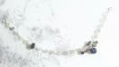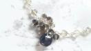 アクセントにアイオライトを、あわせて濃い色のスモーキークォーツを留めつけました。
