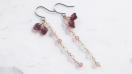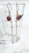 濃い赤色のガーネットがアクセントのロングピアスです。